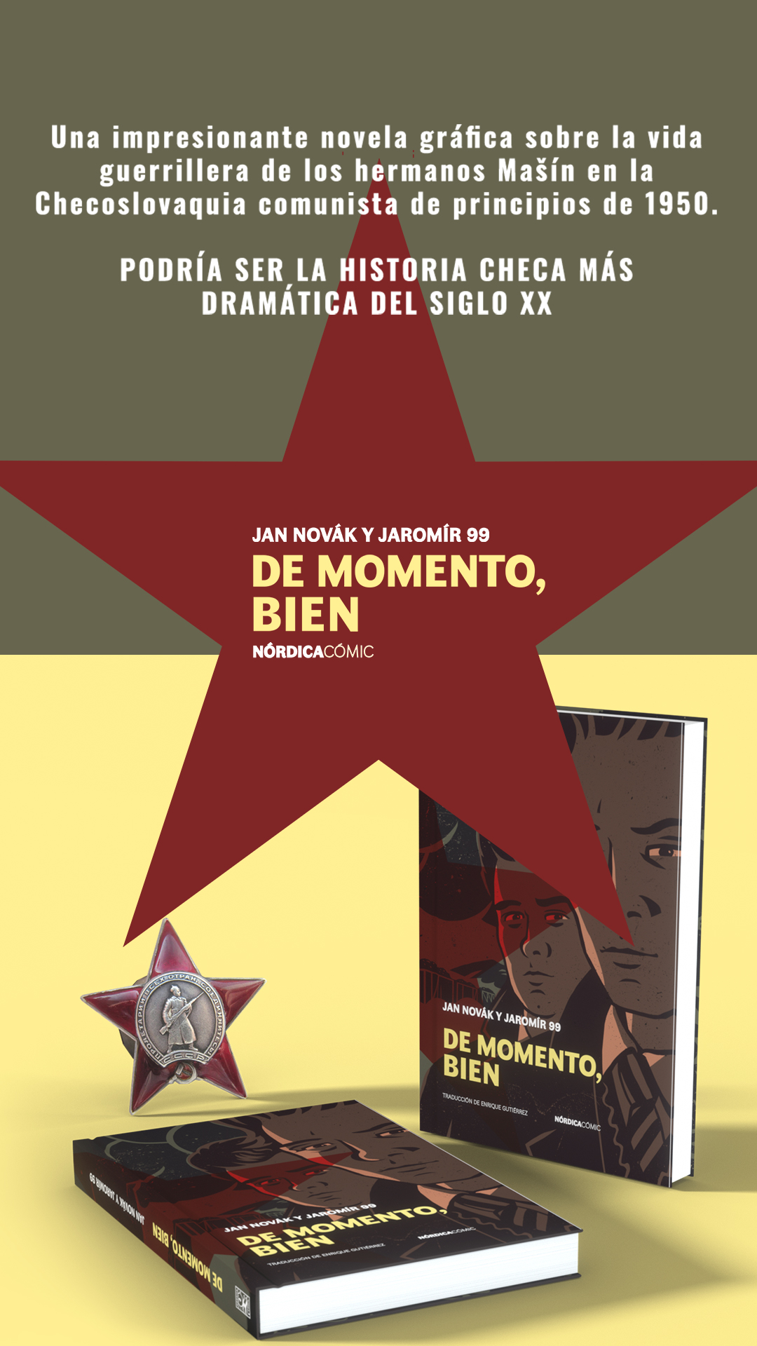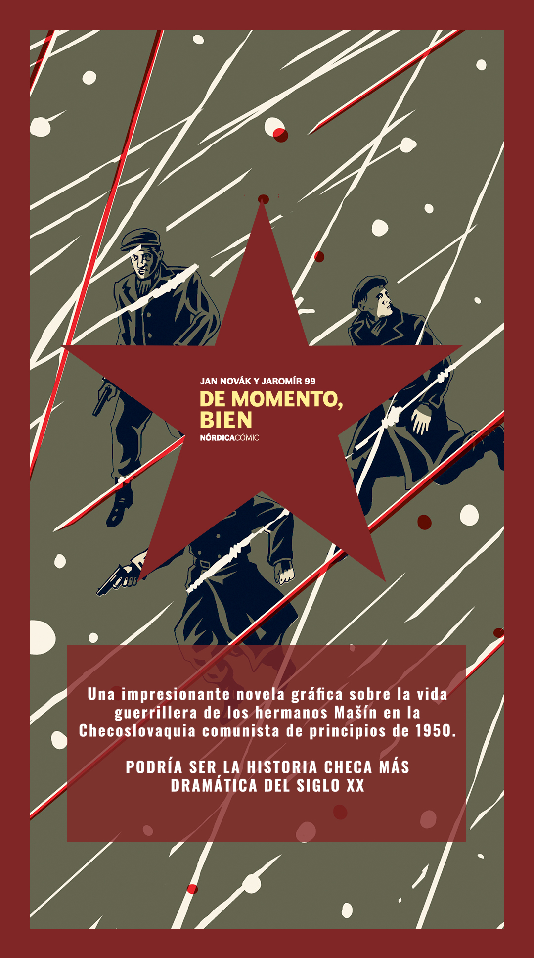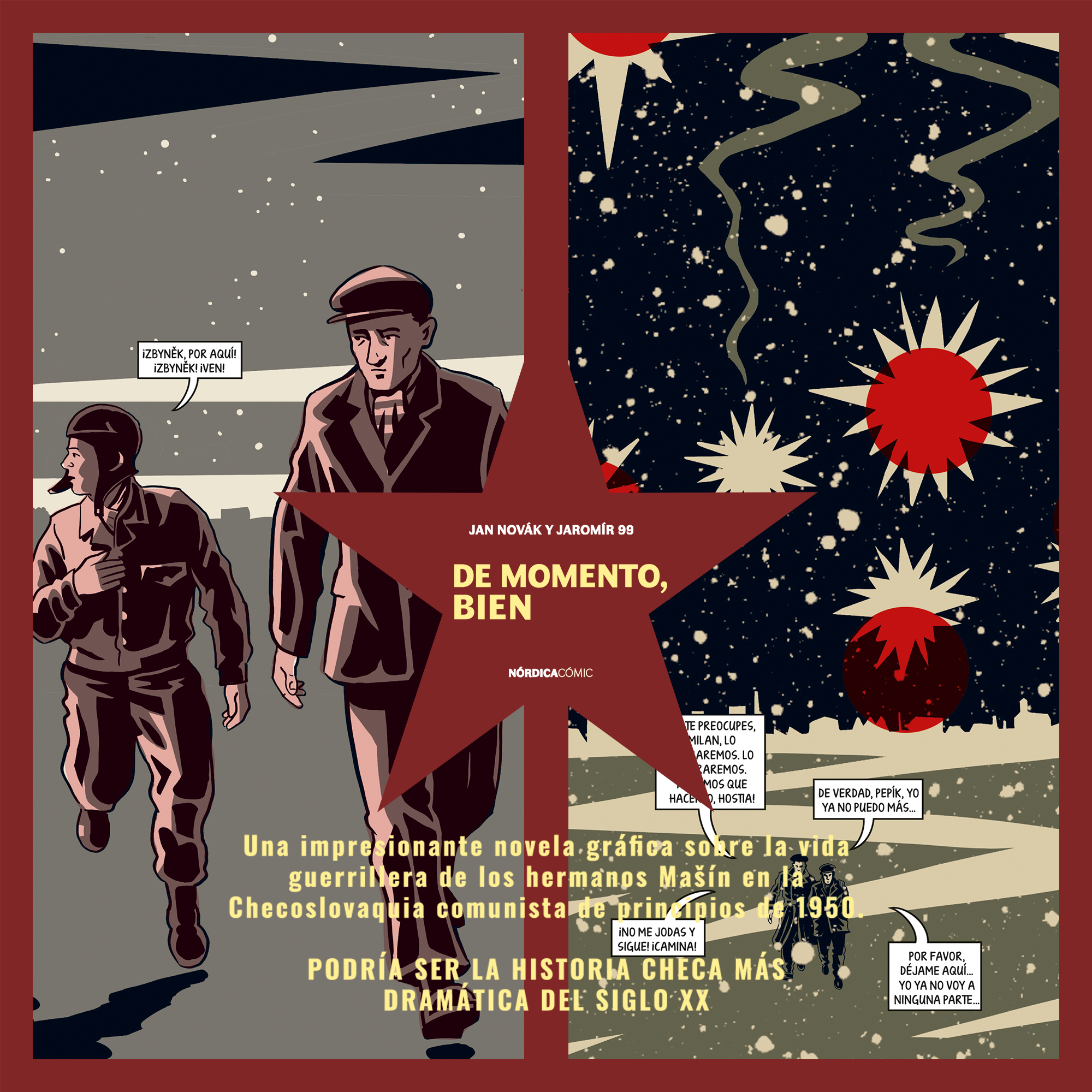 De momento bien es uno de los cómics más exitosos en la República Checa y narra uno de sus sucesos históricos recientes más conocidos.